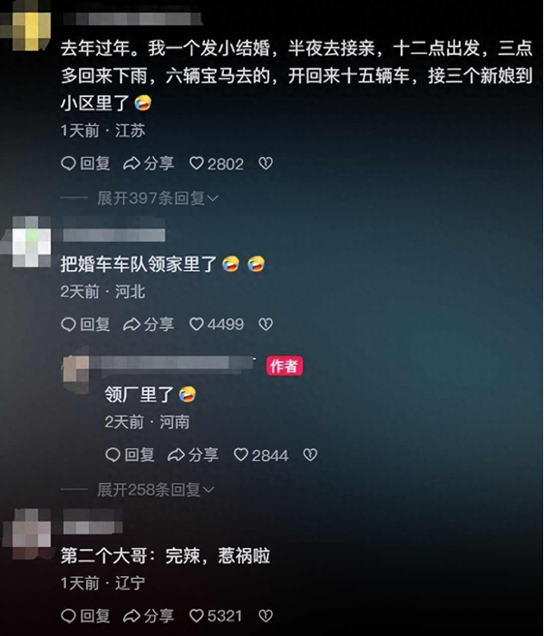 视频火了之后,不少人留言说自己也碰上过差不多的事,有人春节去接新娘,出发时候带着六辆车,回来路上多出九辆,还差点把别家新娘接错,大伙儿都说现在婚车还是老样子,前面带路后面跟着,没人用导航或者定位。