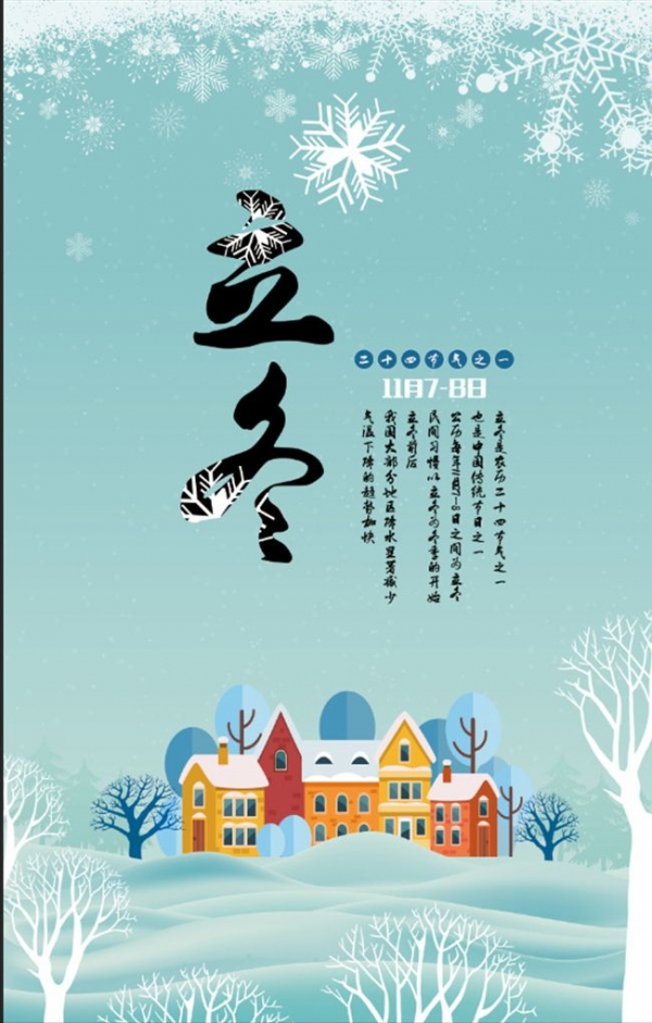 立冬一般在公历 11 月 7 日至 8 日,是四时八节之一,在农历可能是九月或十月,他代表了季节的转变,即将进入寒冷的天气中。