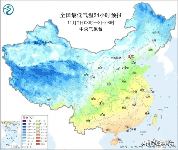 今天(7日早上到8日早上),冷空气首先袭击北方。内蒙古中东部、东北西部、青海南部、河北北部局地出现小到中雪或雨夹雪,内蒙古东部局地大雪达到5~9毫米。新疆、内蒙古等地风力明显增强,阵风7~8级,出行要注意防风。