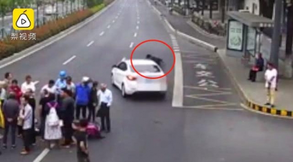 在附近上班的唐某特意跑去围观车祸现场,只见他双手环保在胸前,俨然一副看闹热不嫌事大的样子,先是站在马路中央,之后打算回到路边的站台,随后又再次来到路中央,在离开时被小车撞到。
