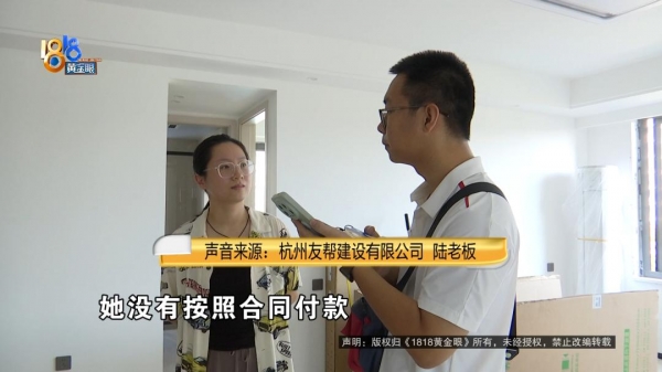 杭州友帮建设有限公司 陆老板:我跟你说很简单的,第一,她没有按照合同付款。