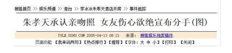 直到2004年,媒体爆出李冰冰与朱孝天在酒店亲密拥吻。