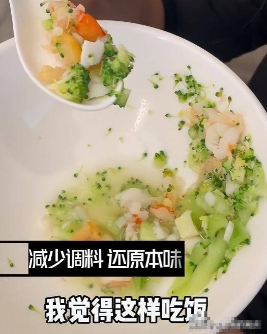 清淡的饭菜让人一看就毫无食欲,而李冰冰却能吃的下去,