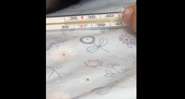 11月11日,山东,小男孩甲流高烧不退耳朵泛红,妈妈用温度计测耳朵吓坏,耳朵边温度已达39.2度 。
