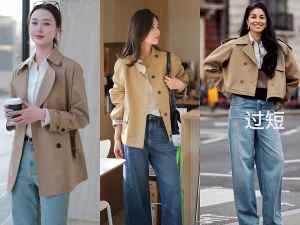 短风衣外套有不同长度,建议选择长度过胯到臀部,或盖过臀部到大腿中部的长度,适合大多数人。避免长度过短,如胯部以上,容易暴露腰腹部赘肉。