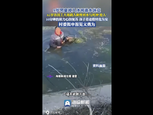 河水齐腰,他捡了根棍子就往河里探。天寒水冷,摸了几分钟全是水草。突然,棍子挑到一块布料--是孩子的衣服!他和工友连拉带拽把孩子拖上岸,孩子已脸色发青,没意识了。两人跪地开始心肺复苏。按了几十下,孩子嘴唇一动慢慢缓过来了!这时他们才发现自己的手机泡坏了,而且两个人浑身湿透......当地村委在了解此事后已经向上级部门汇报,将为两名救人者申报见义勇为。