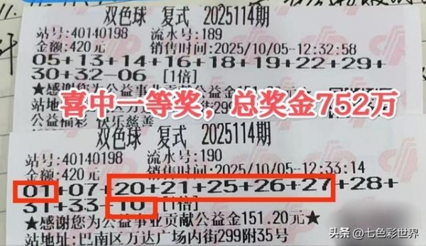 经过4天的彩票休市期,10月5日双色球迎来了第25114期的开奖,结果没想到一等奖小爆7注,其中来自重庆的合买团凭借一张420元的复式票成功击中752万元奖金,引来无数彩民羡慕的目光。