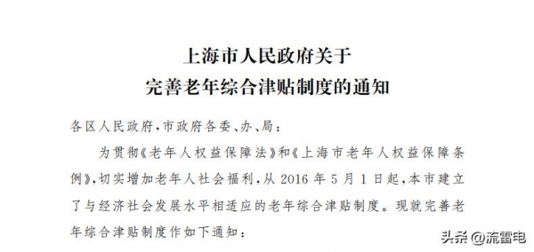 比如上海市从2016年开始,就建立了老年综合津贴制度,每个月给具有上海市户籍且年满65周岁的老年人发放津贴,按照年龄分为5个档次,其中65到69岁的老年人可以领取75元。