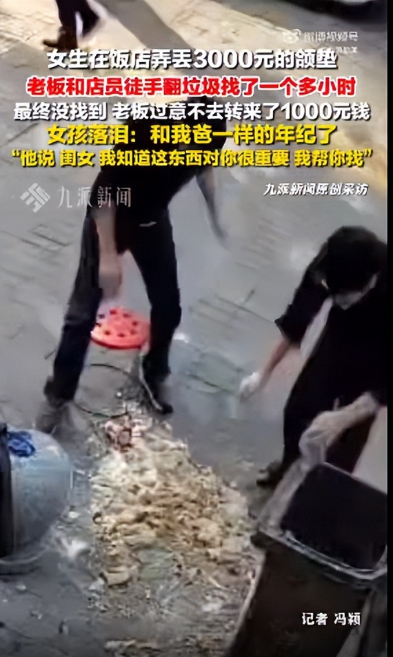 17日,当事女生征征告诉记者,她刚毕业不久,颌垫丢了不敢和家里说,边找边哭,店内员工都全力配合帮忙,老板在外得知后也回到店里一起帮忙。看着和自己父亲一样年纪的老板翻泔水,征征很难受,劝老板别找了,但老板坚持帮忙,最后没找到颌垫,她过意不去买了礼品回到店里,想表示感谢,没想到店员还在找。