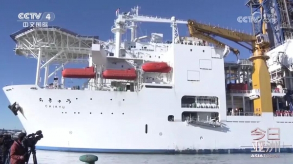 12日上午9时,日本深海钻探船"地球号"从日本静冈市清水港出发,前往距东京约2000公里的南鸟岛海域,对含有稀土的海底泥浆进行钻探试验。