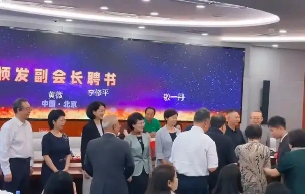 在活动现场,李修平还站在台上,和老同事敬一丹、黄薇同框,