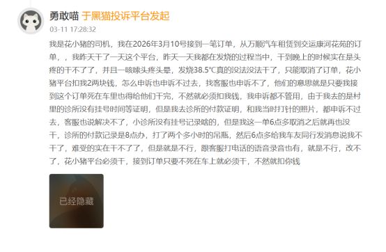 其三,客服响应低效,"踢皮球"式处理形同虚设。当消费者遭遇价格纠纷、司机违规等问题时,联系平台客服寻求解决,得到的往往是"收到反馈,尽快解决""已转交专员处理"等敷衍话术,真正能够切实解决问题、挽回消费者损失的情况寥寥无几,客服的不作为进一步加剧了消费者的不满。