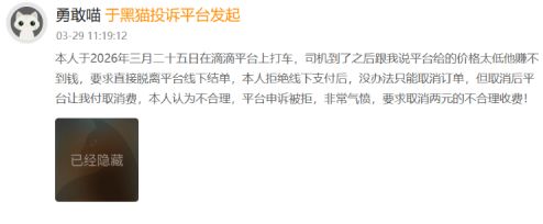 其二,司机违规乱象频发,私下加价、拒载成常态。消费者投诉中,频繁出现司机以"订单价格太低"为由,要求乘客进行线下交易、额外加价的情况。更令人诟病的是,部分乘客拒绝司机的违规要求后,反而被平台判定为"有责取消",扣除相应取消费,权责倒置的操作让消费者难以接受。