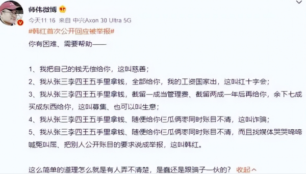 沉默无法得到大众的理解,清白公益的她只能放话: