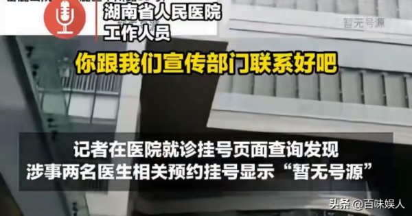 另外,在医院就诊挂号页面发现,涉事两名医生相关预约挂号,显示"暂无号源" ,至于什么时候复诊,工作人员表示"不知道"。