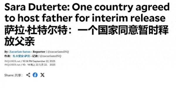 据菲媒《每日问询者报》消息,上周末菲律宾副总统莎拉·杜特尔特在访问日本期间发表声明称,已经有一个国家同意接收她的父亲、菲前总统杜特尔特,只要国际刑事法院批准杜特尔特法律团队提出的临时释放请求,杜特尔特就能获释。