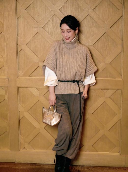 最近看她出席活动,那一身打扮,透着一股"大女主"的劲儿。高领毛衣外面套个丝绸衬衫,下面是亚麻裤子,腰带一系,脚上踩着高跟鞋,既舒服又显得特别有范儿。