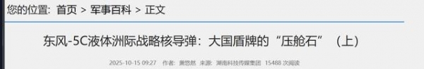 相比之下,北京在2017年悄悄完成东风-5C的"十弹齐放",事后只用一句"属正常科研试验"轻描淡写。低调背后,是一次性点火成功的自信,也是对外界心理的一次精准拿捏。