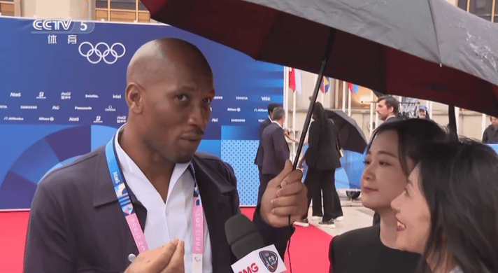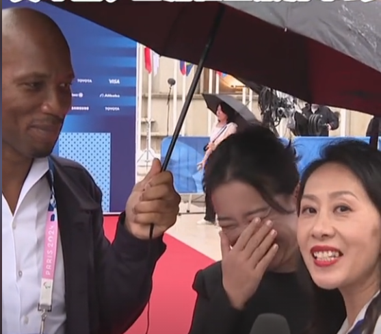 身边站着的足球名宿德罗巴都被她的笑容感染到,一直在憋笑。