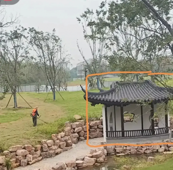 要知道这一次发生坍塌的凉亭是在去年11月19日刚建成并投入使用的,距离现在还不到9个月。下图就是此次遭遇雷击而坍塌的凉亭。