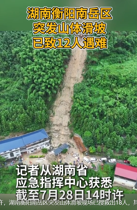 7月28日上午,湖南省衡阳市南岳区寿岳乡岳林村的一家民宿被突如其来的山体滑坡冲垮。