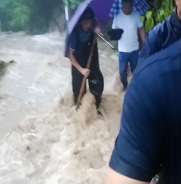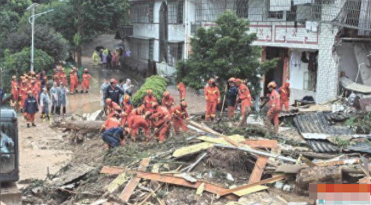 但是山路难行,再加上暴雨影响,道路被冲垮,给救灾带来困难。