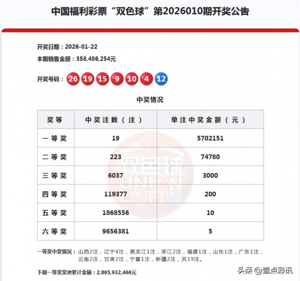 1月22日,农历腊月初四,星期4,双色球26010期开奖。