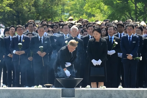 去年文在寅夫妇参加卢武铉的追悼仪式