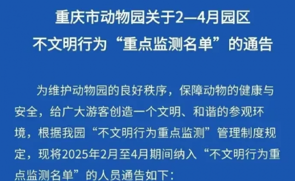 看完重庆动物园2-4月园区游客"不文明行为"重点监测名单"通报,我有两个感受: