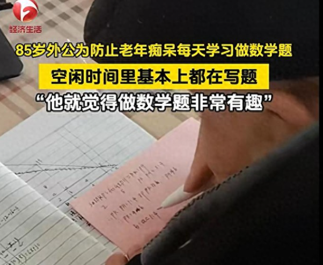 近日,江苏盐城一位85岁的老人家火了。为啥?因为为了预防老年痴呆,老爷子不走寻常路,不喝茶遛鸟,也不跳广场舞,而是给自己布置了一项"特殊任务"--每天坚持做数学题!