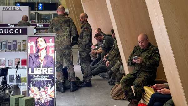 当地时间1月18日,德国士兵正在努克机场等待撤离。 法新社
