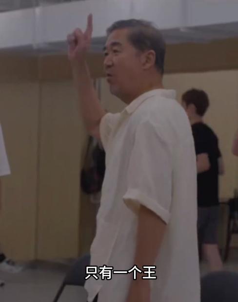 张先生穿着一个白色的衬衣短袖,他在教演员们说台词,他说的台词依然中气十足。