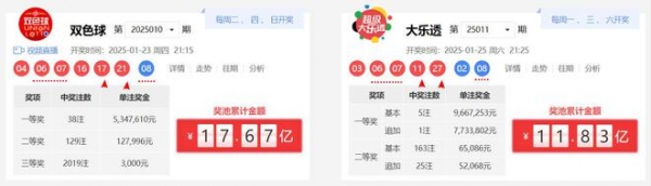 大乐透25011期开奖:黑龙江喜提双冠王!1.7亿奖池再掀热潮