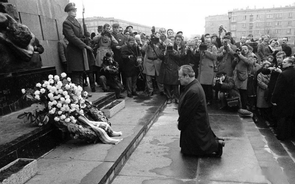 历史上,当德国前总理勃兰特跪倒在华沙犹太人纪念碑前时,全世界见证了一个民族的道德勇气。