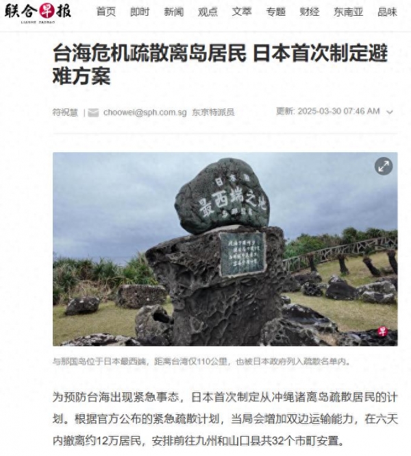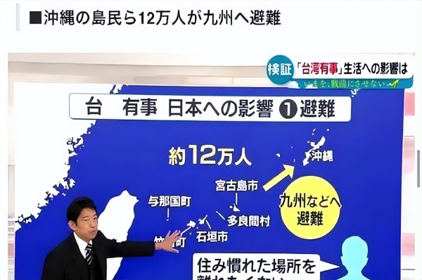 今年4月公布的"冲绳紧急撤离计划",宣称若台海冲突爆发,将在6天内撤走12万当地居民。