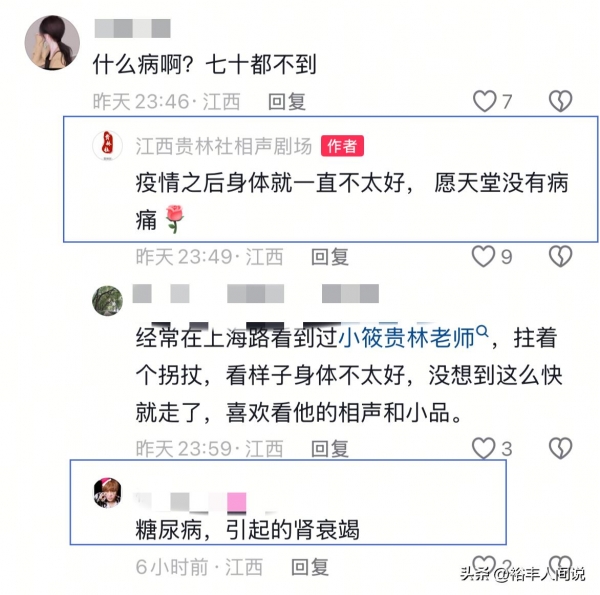 有一位来自江西的网友表示,万新明是因为讨糖尿病引发的肾衰竭。
