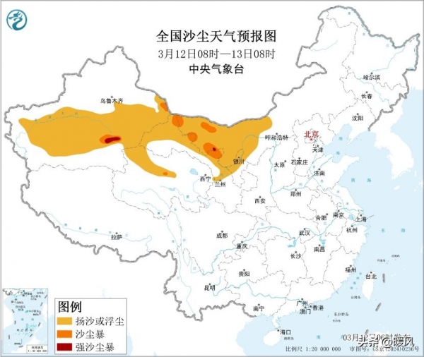 此外,中央气象台3月12日06时继续发布沙尘暴蓝色预警,新疆、甘肃、内蒙古西部等地仍有扬沙或浮尘天气,局地可能出现沙尘暴,需重点防范空气污染及低能见度影响 ;我国近海海域(渤海、渤海海峡、黄海北部等)将持续6~8级风,海上航行、渔业作业需加强安全防护 。