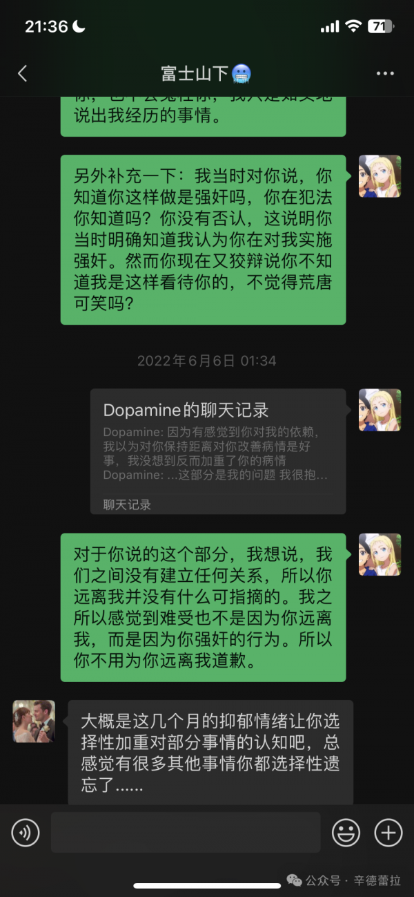 3、万婧妍事后与张某聊天,张某也承认了自己强迫她的事实,而且张某对于万婧妍患病的情况也十分清楚,但是张某依然选择强制与万婧妍发生了关系。