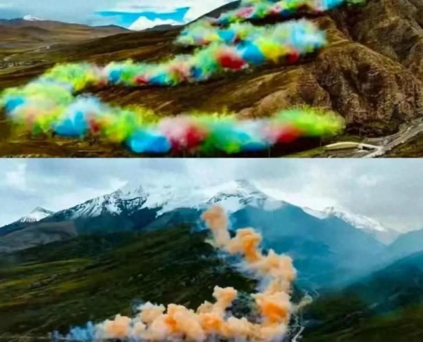 9月19日,户外品牌始祖鸟联合艺术家蔡国强,在西藏日喀则市江孜县热龙乡海拔约5500米的喜马拉雅山脉,举办了一场名为《蔡国强:升龙》的烟花秀,现场通过火药爆破形成"升龙"动态景观。