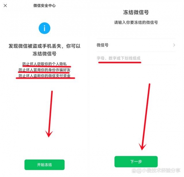 然后我们点击开始冻结,然后进行验证一下,验证通过之后,输入我们的微信账号,就可以进行冻结了!