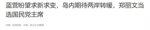 至少目前看来,郑丽文的当选有可能给国民党和两岸关系带来一些新气象,还是那句话,听其言,观其行,干好自己的事。