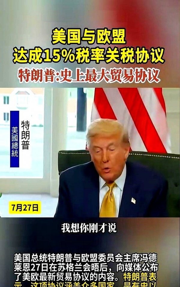 7月27日凌晨,冯德莱恩悄悄把协议签了。