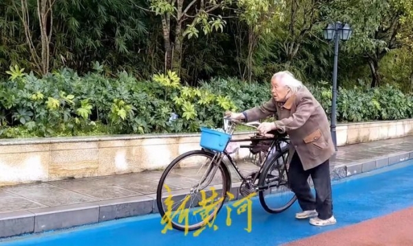 洞洞鞋白发自行车 就是爷爷的"标配"