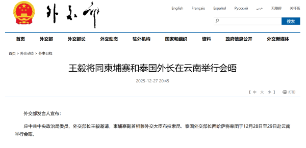 外交部网站12月27日消息,外交部发言人宣布: