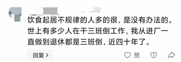 也有人感同身受:"现在工作太忙,很多人都做不到三餐规律,真是无奈。"