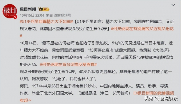 当年做为湖南台的"台柱子",何老师被称为"逆龄生长"的代表。