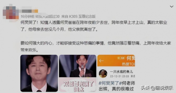 2022年年末,前天父亲刚刚去世,第二天何炅却要站在跨年晚会的舞台上面对观众。