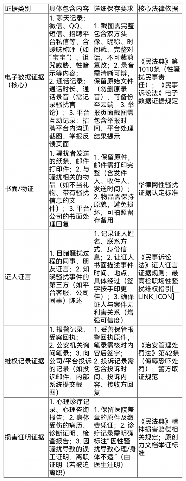 附"职场性骚扰维权证据清单":