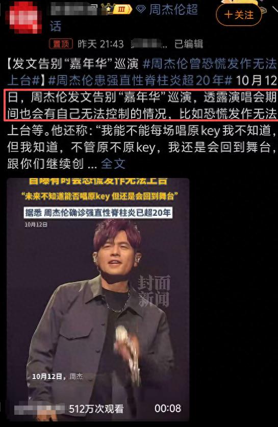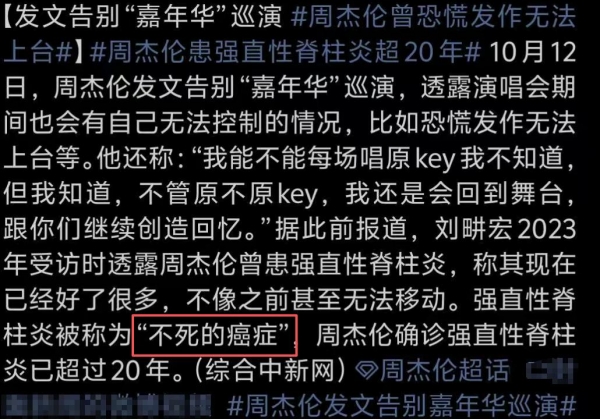 周杰伦发文告别!确诊“不死癌症”已超20年