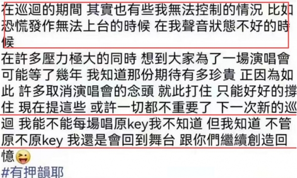 "不管原不原Key,我还是会回到舞台,跟你们继续创造回忆。"